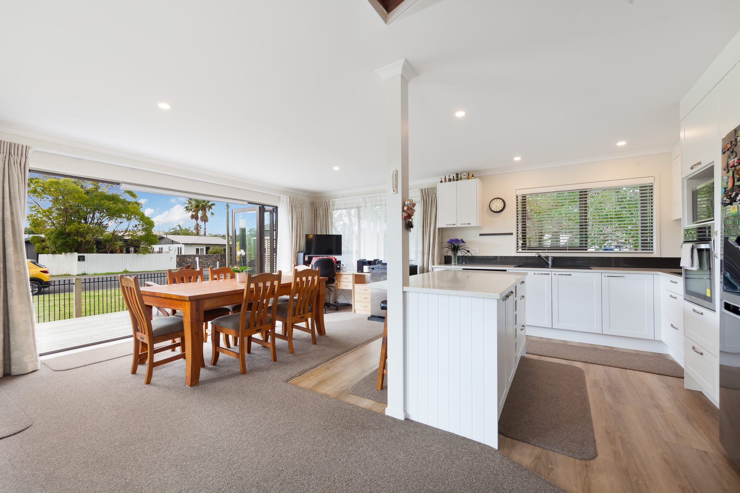 Step inside, and you’ll be greeted by a light-filled, open-plan living area that’s perfect for relaxing and entertaining. The stunning new white kitchen features modern appliances, ample storage, and plenty of bench space for preparing your favourite meals. The adjoining dining area flows effortlessly to the outdoor entertaining area, making it ideal for summer barbecues and gatherings with family and friends.